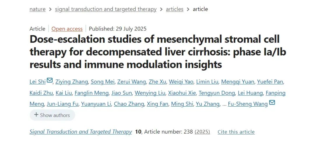 2025年7月29日,在线发表在国际期刊《Signal Transduction and Targeted Therapy》上的一项研究成果,为失代偿性肝硬化(DLC)的治疗带来了新希望。 该研究由中国人民解放军总医院第五医学中心、国家感染性疾病临床研究中心王福生院士团队完成,通过 I 期(Ia/Ib 阶段)临床试验,系统探索了间充质基质细胞(MSC)治疗 DLC 的安全性、剂量效应关系及免疫调节机制,为后续更大规模的临床应用奠定了重要基础。 一、研究背景:DLC 治疗的困境与 MSC 的潜力 失代偿性肝硬化是肝硬化的终末阶段,患者不仅面临严重的肝功能衰竭,还伴随免疫失调 —— 这是一种 “矛盾状态”:全身炎症反应亢进的同时,免疫防御能力却显著下降,导致感染风险升高、病情快速恶化。 目前,肝移植是唯一根治手段,但受限于供体短缺、手术风险和高昂成本,绝大多数患者难以受益。 间充质干细胞(MSC)是一种具有强大免疫调节能力的干细胞,此前研究显示其可能通过平衡免疫反应、促进组织修复改善肝硬化症状。 然而,MSC 的最佳剂量、给药方式及作用机制在人类患者中尚不明确,这极大限制了其临床应用。为此,研究团队设计了系列剂量递增试验,旨在填补这一空白。 二、试验设计:从单剂量到多剂量的系统探索研究分为两个阶段,共纳入 24 名 DLC 患者,中位年龄 51 岁,主要病因包括乙肝病毒感染(37.5%)和酒精性肝损伤(37.5%),患者普遍存在腹水、食管静脉曲张等并发症,Child-Pugh 评分(评估肝功能的关键指标)中位数为 8.12 分,提示病情已进入中重度阶段。 Ia 期(单剂量试验):采用 “3+3” 剂量递增设计,4 个队列分别接受单次 MSC 输注,剂量从 5.0×10⁷细胞到 2.0×10⁸细胞不等。患者在治疗后 3 天、7 天、14 天和 28 天接受随访,同时通过单细胞 RNA 测序、飞行时间质谱流式细胞术等先进技术,分析免疫细胞的动态变化。Ib 期(多剂量试验):基于 Ia 期结果,选取两个剂量组(1.0×10⁸细胞 / 次和 2.0×10⁸细胞 / 次),患者每周输注 1 次,共 3 次,随访至 28 天,进一步验证多剂量方案的安全性和可行性。国内研究数据表明我国现有肝硬化患者约 700 万,另一些资料显示我国肝硬化患者超过 800 万人。失代偿期是肝硬化的一个阶段,从整体肝硬化患者数量来看,即使按一定较低比例估算失代偿性肝硬化患者,其人数也在百万级别 。 三、关键发现:安全可控,免疫调节机制浮出水面经过 28 天的密切观察,研究得出了多项突破性结论: 1. 安全性与耐受性良好,无严重不良反应两个阶段的试验中,所有患者均未出现严重不良事件、剂量限制性毒性或意外严重反应。仅 10 例轻微不良反应,如皮疹、低热等,多为 1-2 级(轻度至中度),且与 MSC 治疗的关联性较低。这表明,即使在高剂量(2.0×10⁸细胞)和多剂量方案下,MSC 治疗仍具有良好的安全性,为后续研究提供了重要保障。 2. 高剂量与多剂量方案的免疫调节作用更显著通过多组学分析,研究发现 MSC 的免疫调节效果存在 “剂量依赖性”:高剂量组(如 2.0×10⁸细胞)比低剂量组能更有效地调节免疫细胞活性,尤其是单核细胞亚群的变化。 其中,MX1 + 单核细胞被确认为关键 “介导者”。这类细胞在 DLC 患者体内数量异常升高,且高度表达与炎症相关的基因;而 MSC 治疗后,其数量随剂量增加显著减少,且功能活性(如细胞因子分泌)受到抑制。这种变化在治疗后 7 天最为明显,但 14 天后逐渐减弱,提示可能需要优化给药间隔以维持效果。 3. 临床指标初步改善,高剂量组效果更优尽管是 I 期试验,研究仍观察到积极的临床信号: 肝功能指标:高剂量和多剂量组中,Child-Pugh 评分、MELD 评分(评估肝衰竭风险)显著下降,白蛋白、胆碱酯酶等反映肝脏合成功能的指标改善更明显;生活质量:多剂量组患者的慢性肝病问卷(CLDQ)评分改善率达 88.9%,提示治疗可能缓解疲劳、腹胀等症状。四、意义与展望:为 DLC 治疗开辟新路径这项研究的价值不仅在于证实了 MSC 治疗的安全性,更首次在人类患者中揭示了其剂量效应关系和免疫调节的核心机制 ——MX1 + 单核细胞的发现,为未来精准调控 MSC 治疗提供了生物标志物,也为理解肝硬化免疫失调的本质提供了新视角。 不过,研究团队也指出了局限性:样本量较小(24 例),长期疗效仍需 2 年随访数据验证。下一步,更大规模的 II/III 期试验将聚焦于明确疗效、优化剂量和给药频率,推动 MSC 治疗从实验室走向临床。对于广大 DLC 患者而言,这项研究意味着一种新的治疗选择正在从 “潜在可能” 变为 “科学证据支持的方向”。随着研究的深入,或许在不久的将来,MSC 疗法能与肝移植互补,为终末期肝病患者带来更多生存希望。注:本文转载自网络,转载目的在于传递更多信息,并不代表本网赞同其观点和对其真实性负责。如有侵权行为,请联系我们,我们会及时删除。